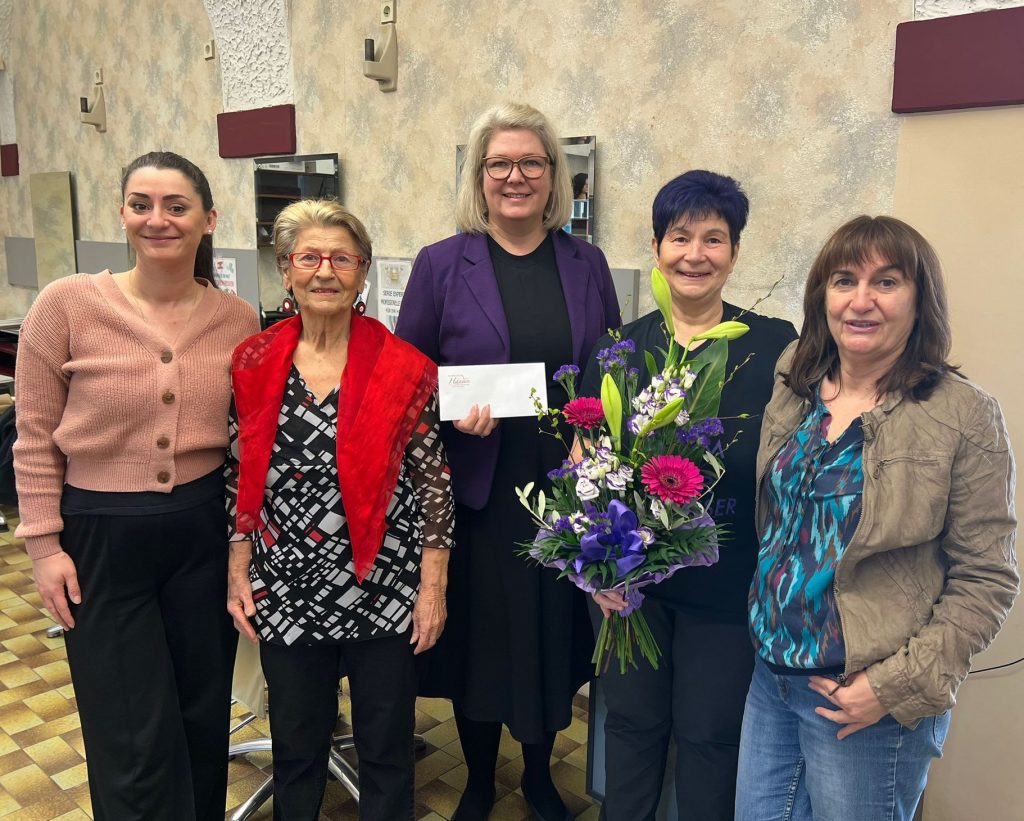Der „Salon Traude“ in Stockerau feierte sein 50-jähriges Firmenjubiläum. Traude und Brigitte Steffal, Senior- und aktuelle Chefin des Friseursalons nahmen dies zum Anlass, Kundinnen, Mitarbeiterinnen und Festgäste einzuladen. Sie baten die Gäste, von Geschenken Abstand zu nehmen und stattdessen den vorgesehenen Betrag zu spenden. So konnte Soroptimist Club -Präsidentin Nicola Hopfeld die großzügige Spende in Höhe von 1.200 € in Empfang nehmen. Die Soroptimistinnen finanzieren damit im Rahmen ihrer Projekte z.B. Ausbildung von Frauen und Mädchen.